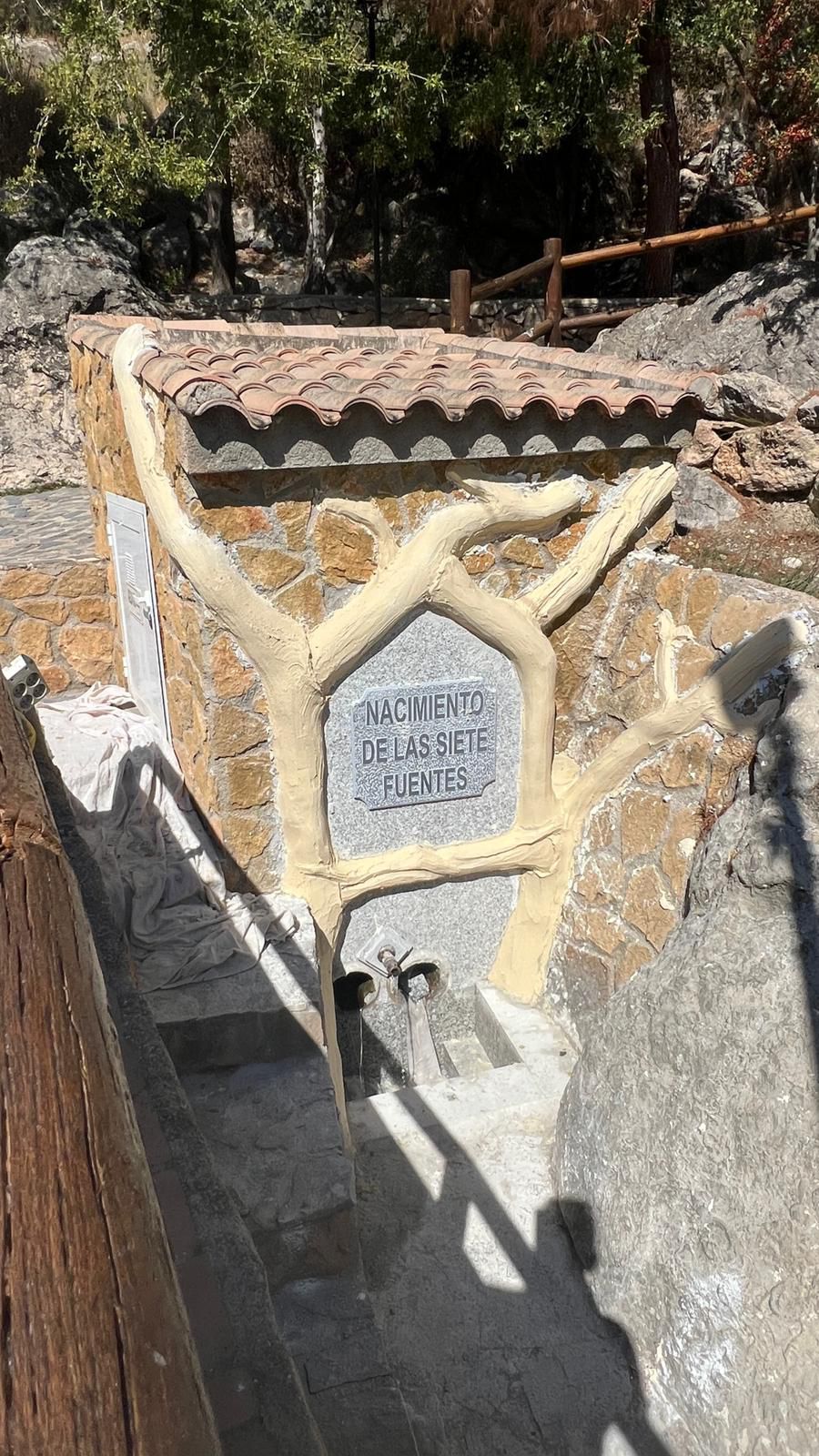 El portavoz explica que el Ayuntamiento de Hinojares intervino en este espacio emblemático del municipio “colocando una especie de lápida en la salida de los caños”, lo que provocó “las primeras reacciones en contra” por un diseño que “parecía más propio de un cementerio”.