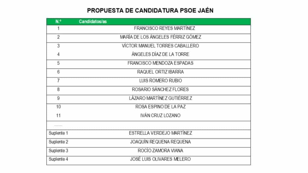 Latorre indica que la candidatura estará encabezada por Francisco Reyes, “un referente del socialismo que va a aportar su experiencia, su conocimiento y su compromiso contrastado con la provincia de Jaén”. En las siguientes posiciones, valora “el buen trabajo parlamentario” que aporta Ángeles Férriz, el “factor municipalista” que incorpora Víctor Torres o “el compromiso con las políticas sociales” de Ángeles Díaz.
